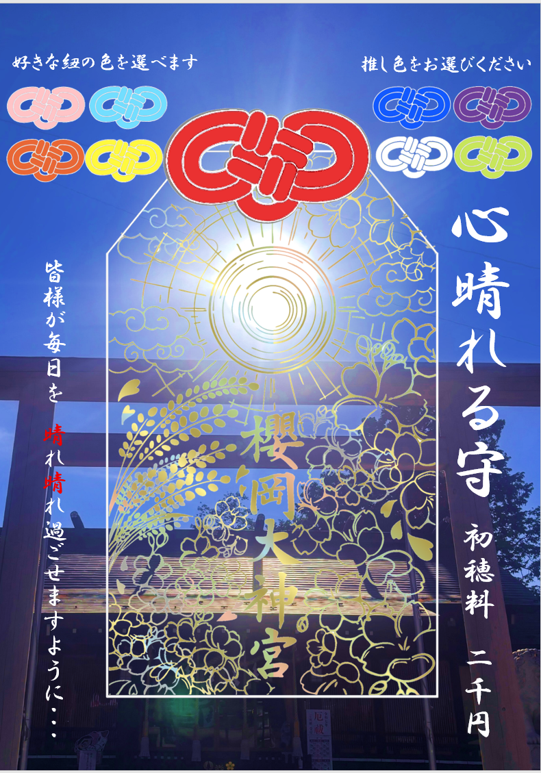 沢山の皆様にお受けいただき、一時的に頒布を休止しておりました「心晴れる守」ですが、年始に頒布の目途が立ちましたのでお知らせいたします。
